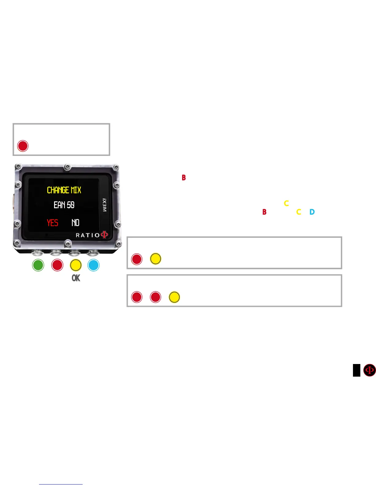 To conrm the mix change select YES (in red) and press C