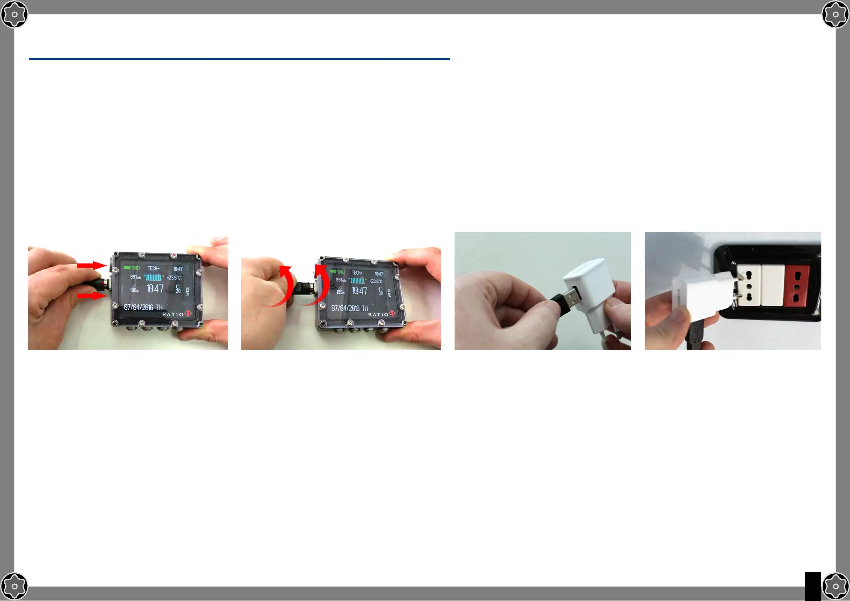ATTENTION: A complete charge cycle is necessary before the device first use.
