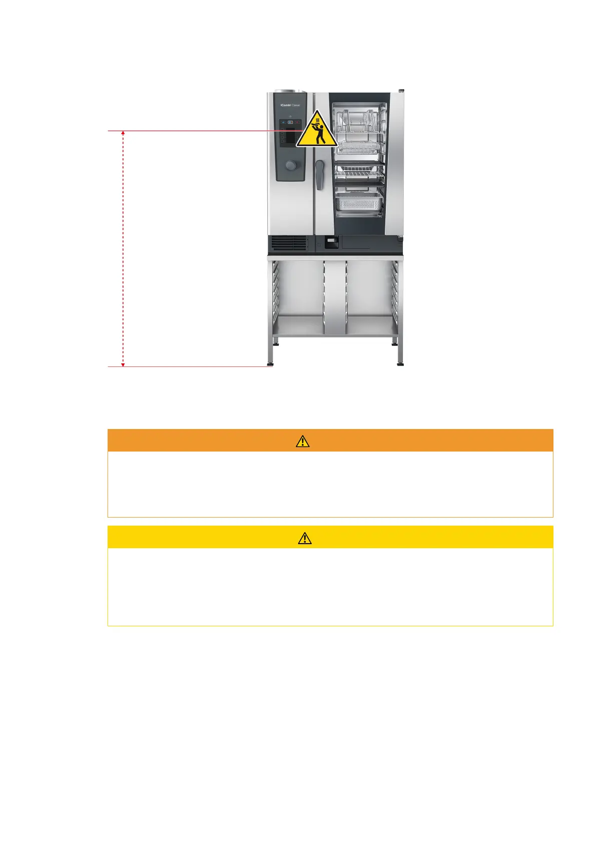 If your unit has been installed so that the top rack is 1.60 m above the floor, you must apply the warning symbol