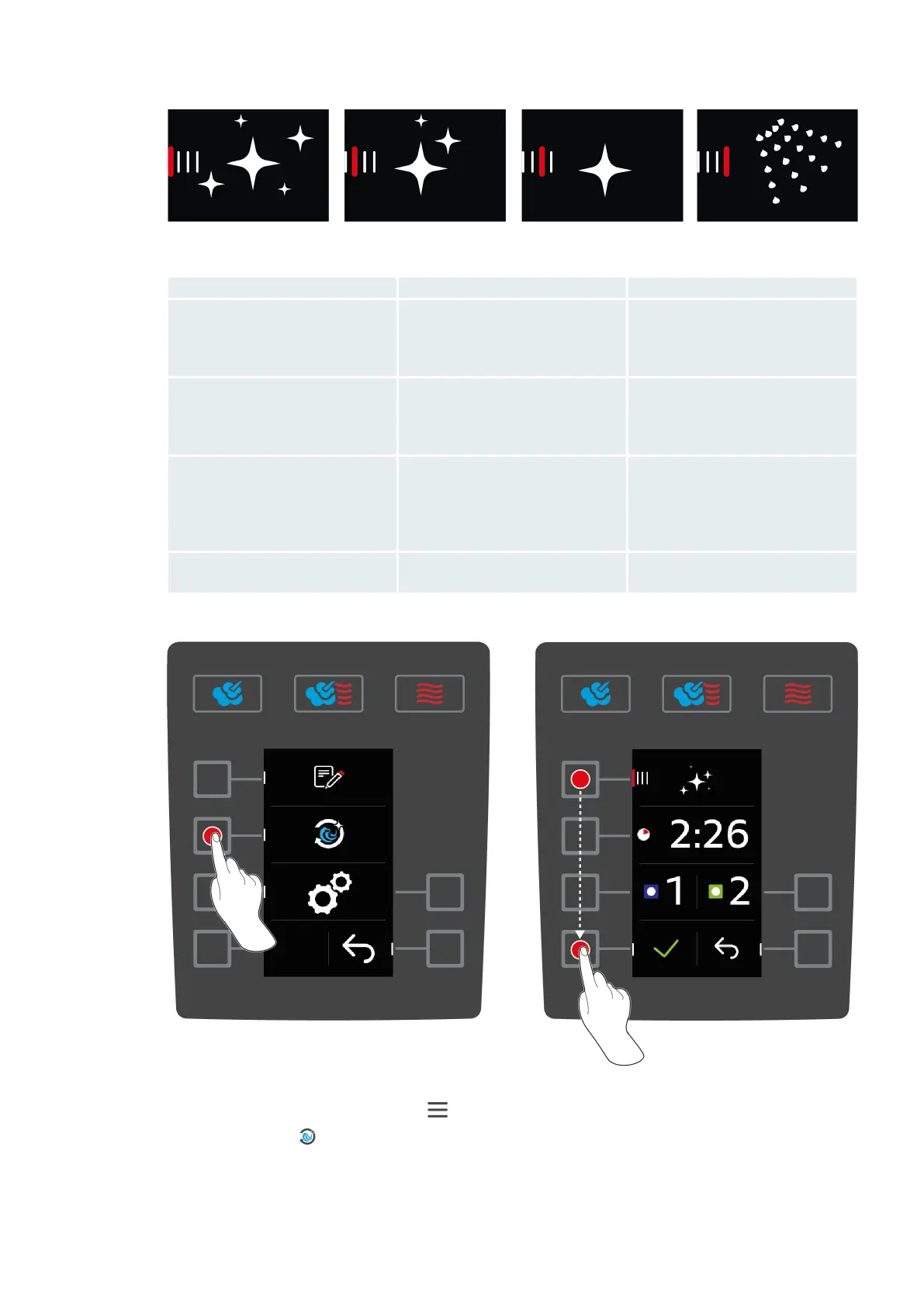 Rinse without tabs Used to rinse the cooking cabinet