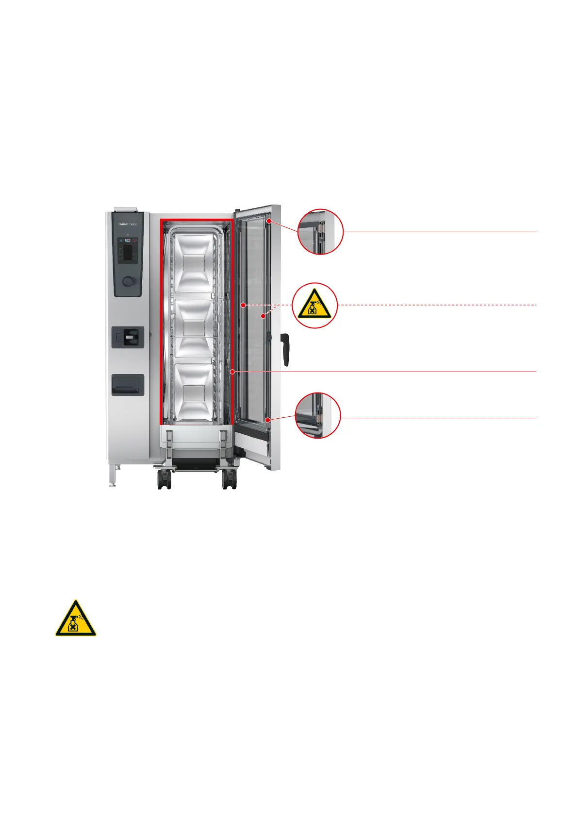 4. Clean the glass panels of the cooking cabinet door with lukewarm water, a mild cleaning agent and a soft cloth.