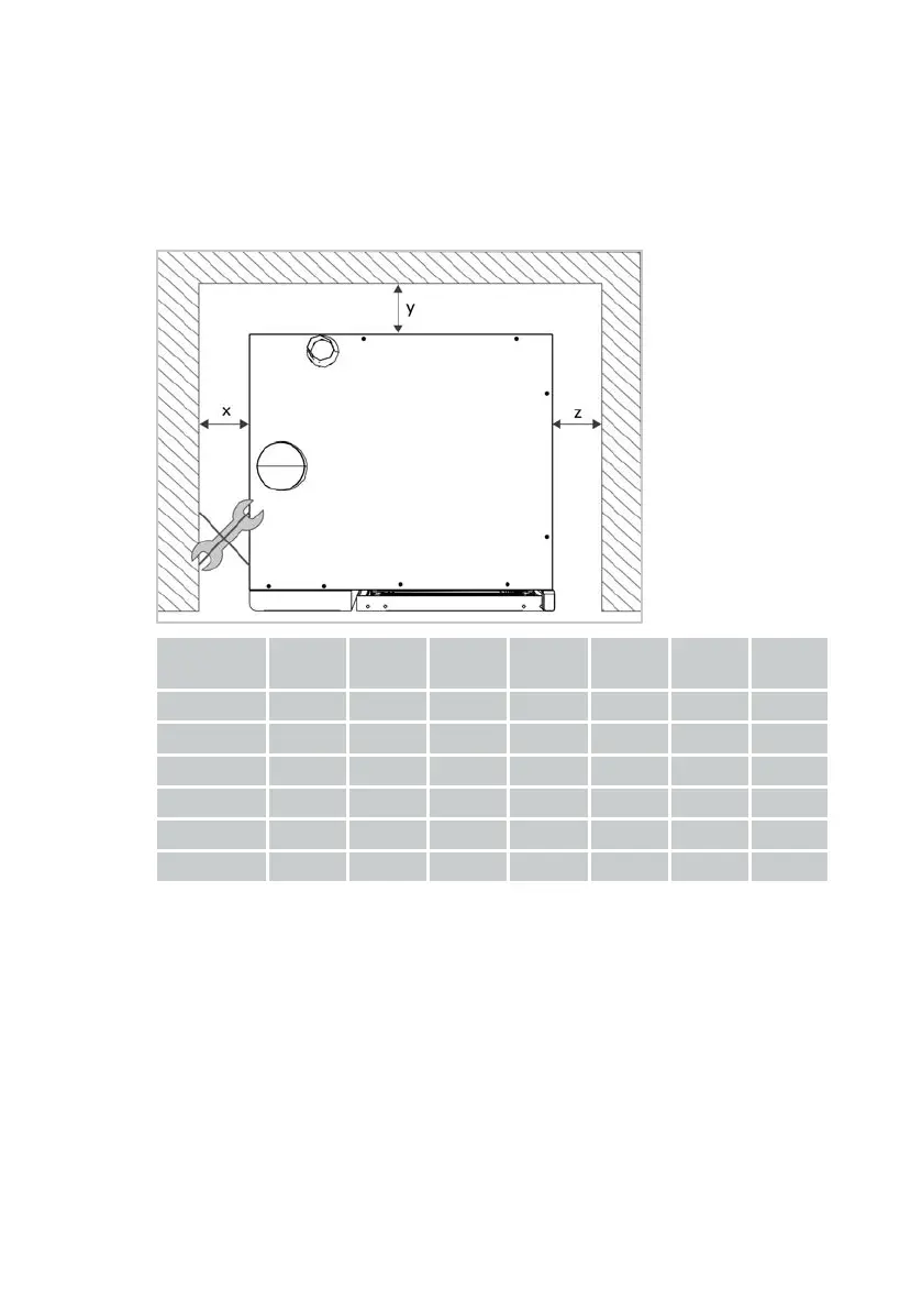Set up the unit taking into account the minimum distances to the wall. The dis-