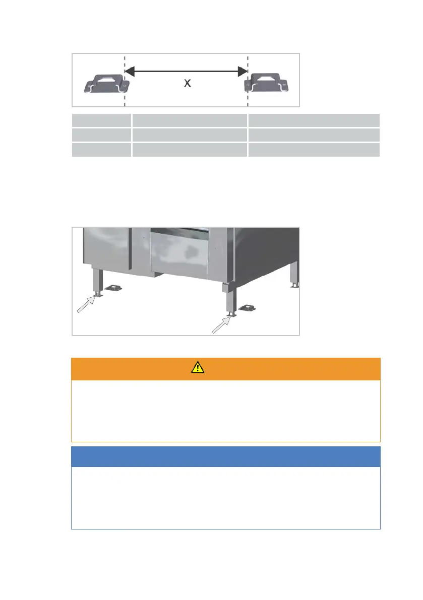 1. Secure the foot locks for the front feet to the floor with the special adhe-