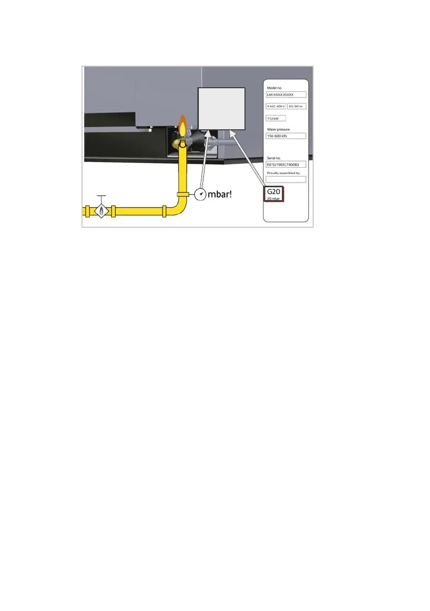 The hose for the gas connection must not be longer than 2.0m [78 3/4