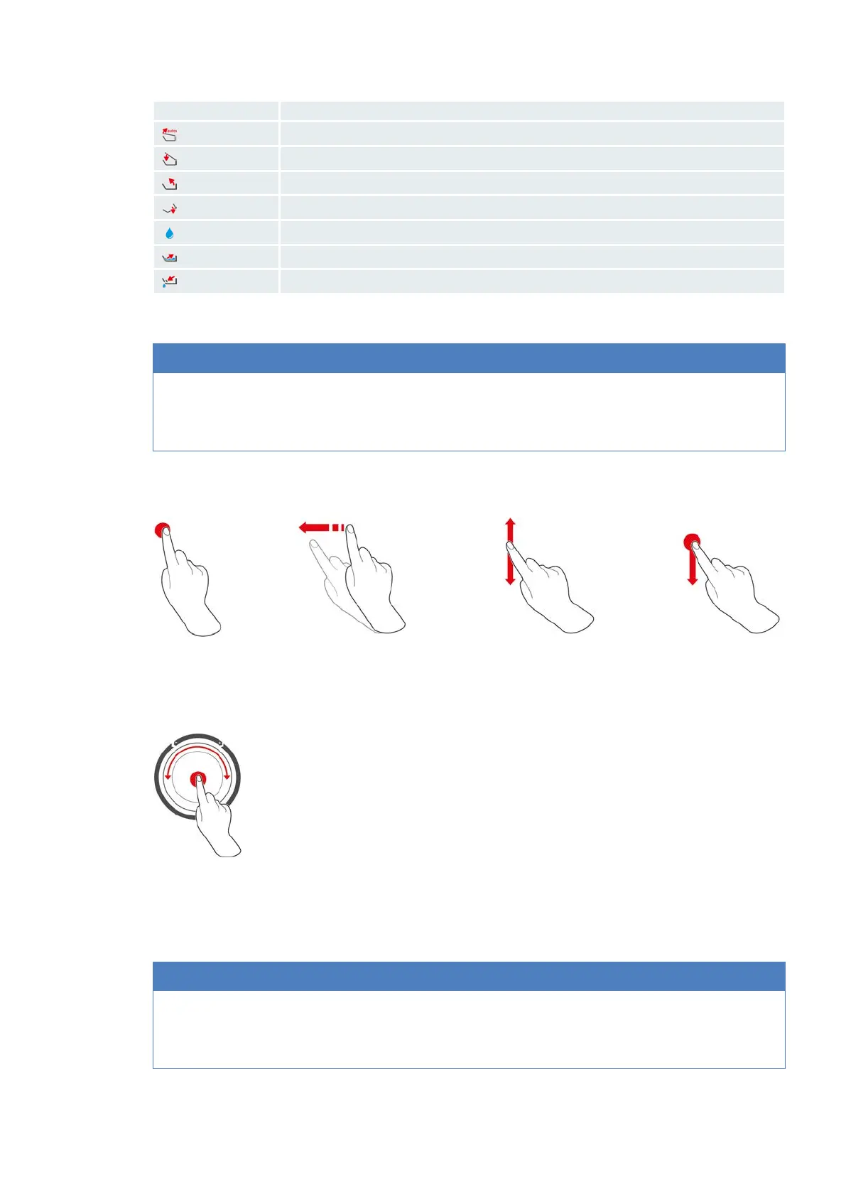 Instead of gestures, you can adjust settings by turning the central knob. Actions (e.g., automatic opening of the pan