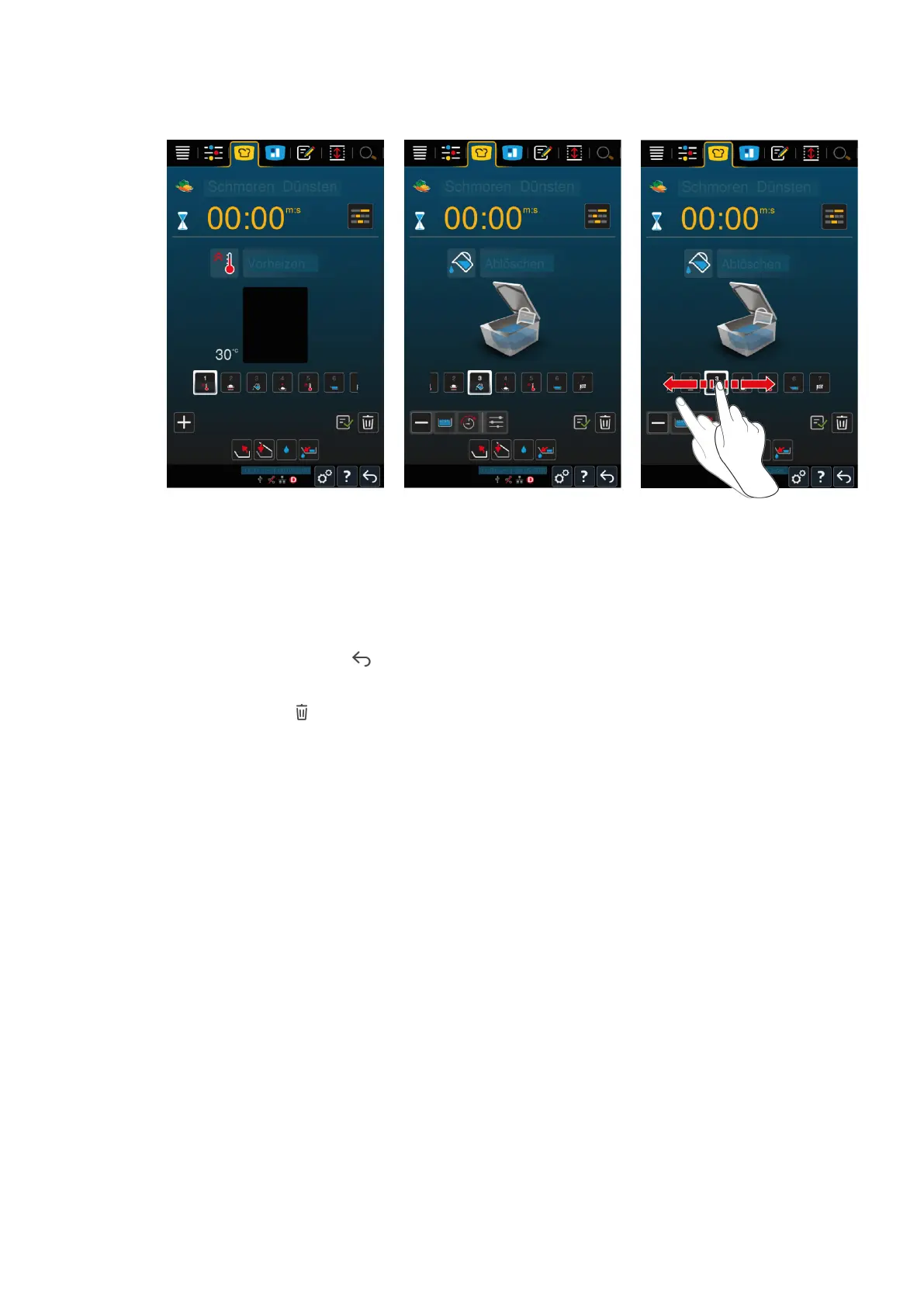 steps that the intelligent cooking path processes are displayed here one after the other. The active cooking step is