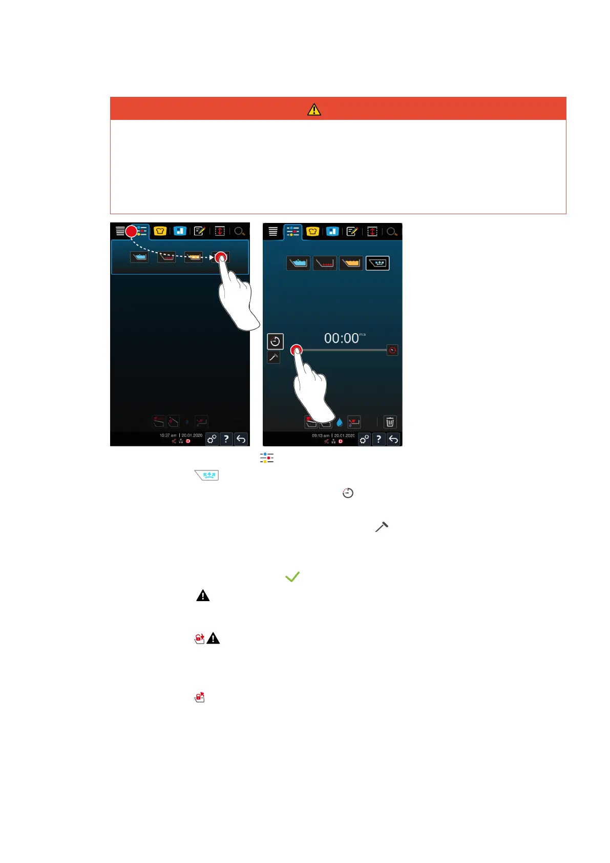 > The pan lid is unlocked and the cooking path is ended. NOTICE!Open the pan lid when prompted. If you do
