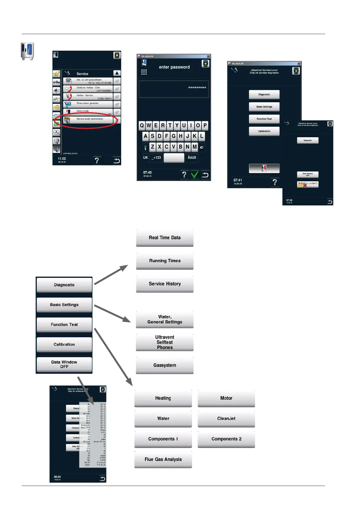 Rational SelfCookingCenter SCC - SCC Service Level Access; Service Menu Navigation; Service Level Options Overview