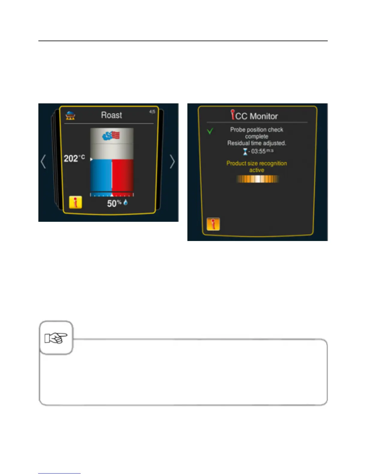 In iCC Monitor, iCooking Control displays the decisions and the adjustments made to the