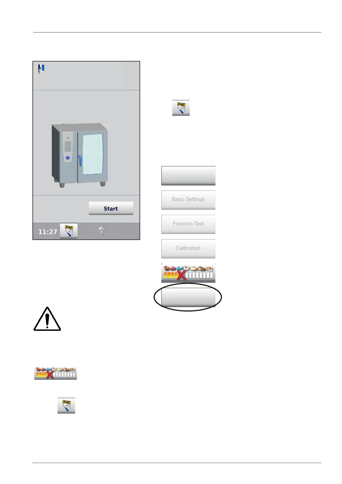 In case a service error is indicated, e.g. Service 34, the service start key is indicated