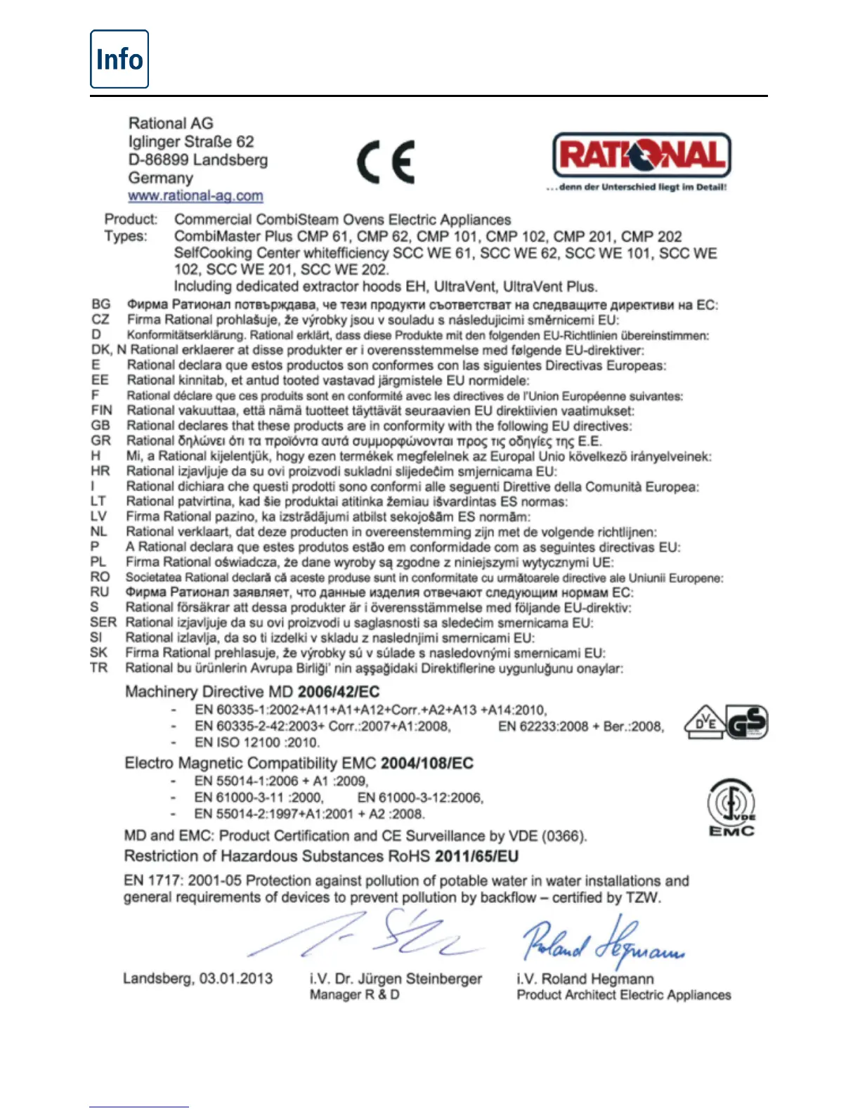 Rational whitefficiency - EU Declaration of Conformity for Electrical Appliances