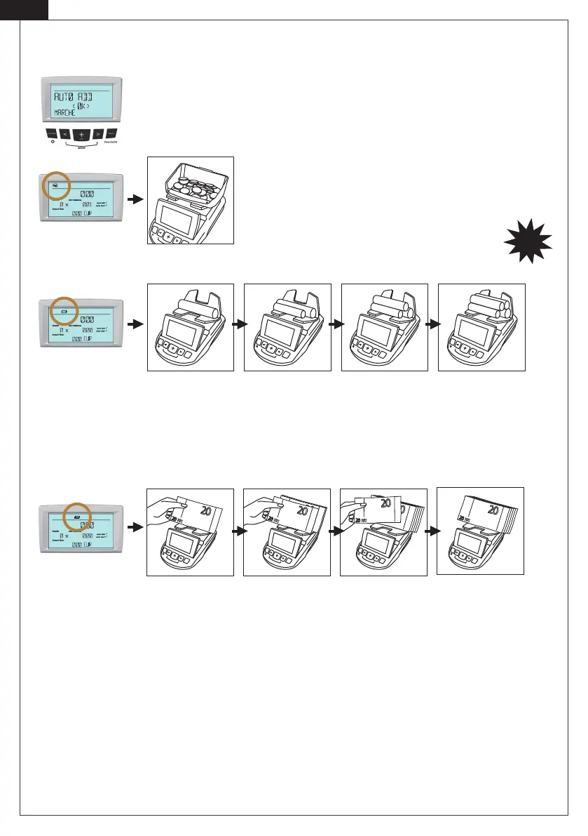 En utilisant cette fonction, vous pouvez compter des rouleaux de pièces et liasses de billets individuelles. Dans le