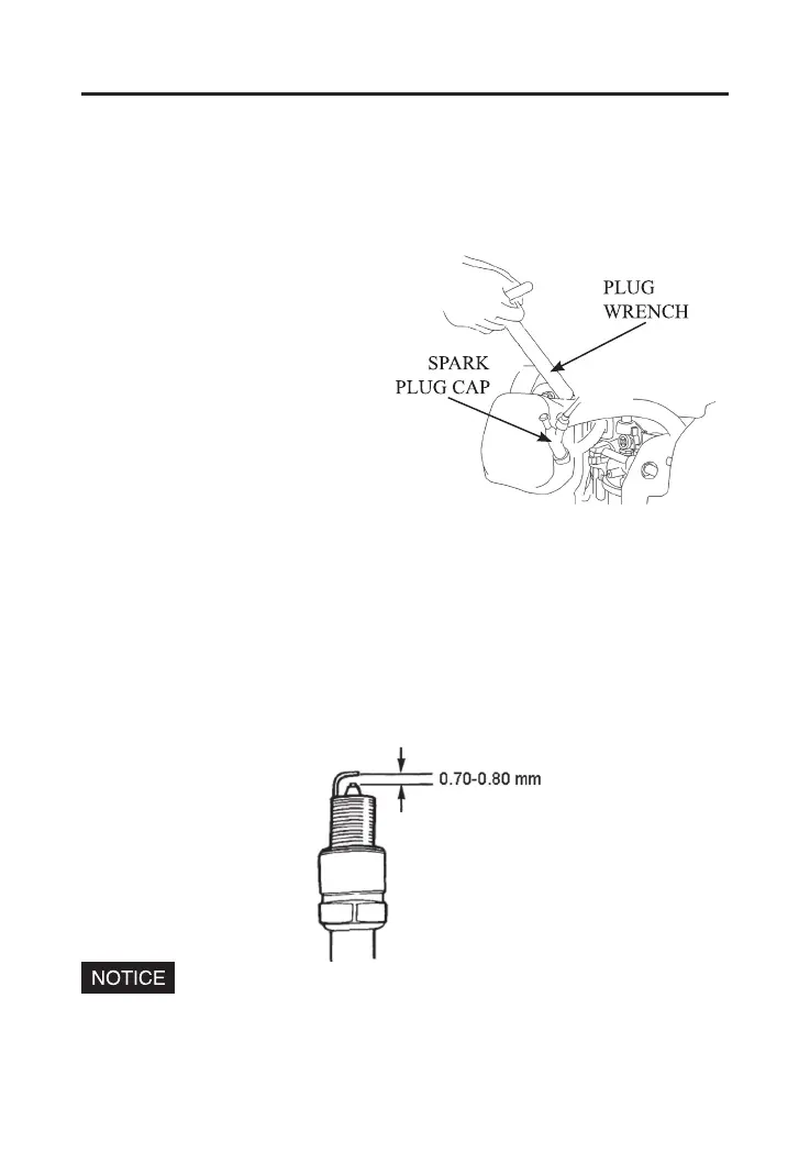 carefully bending the side electrode. The gap should be: 0.70-0.80 mm.