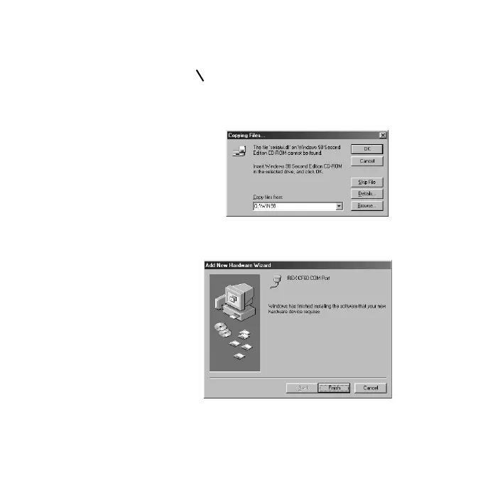 serialui.dll) appears, type in G: Win98 at the [Copy files from] and click