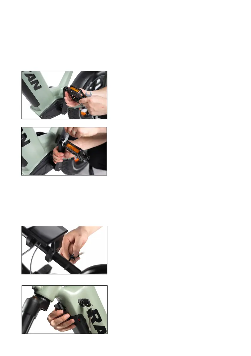 Tighten the pedals with the wrench.