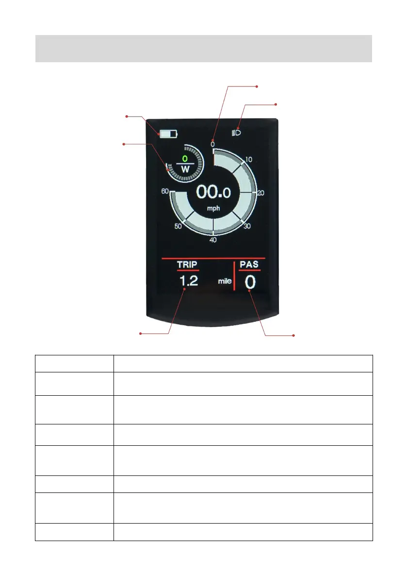 0,1,2,3,4,5 Displays the current pedal assisted mode.