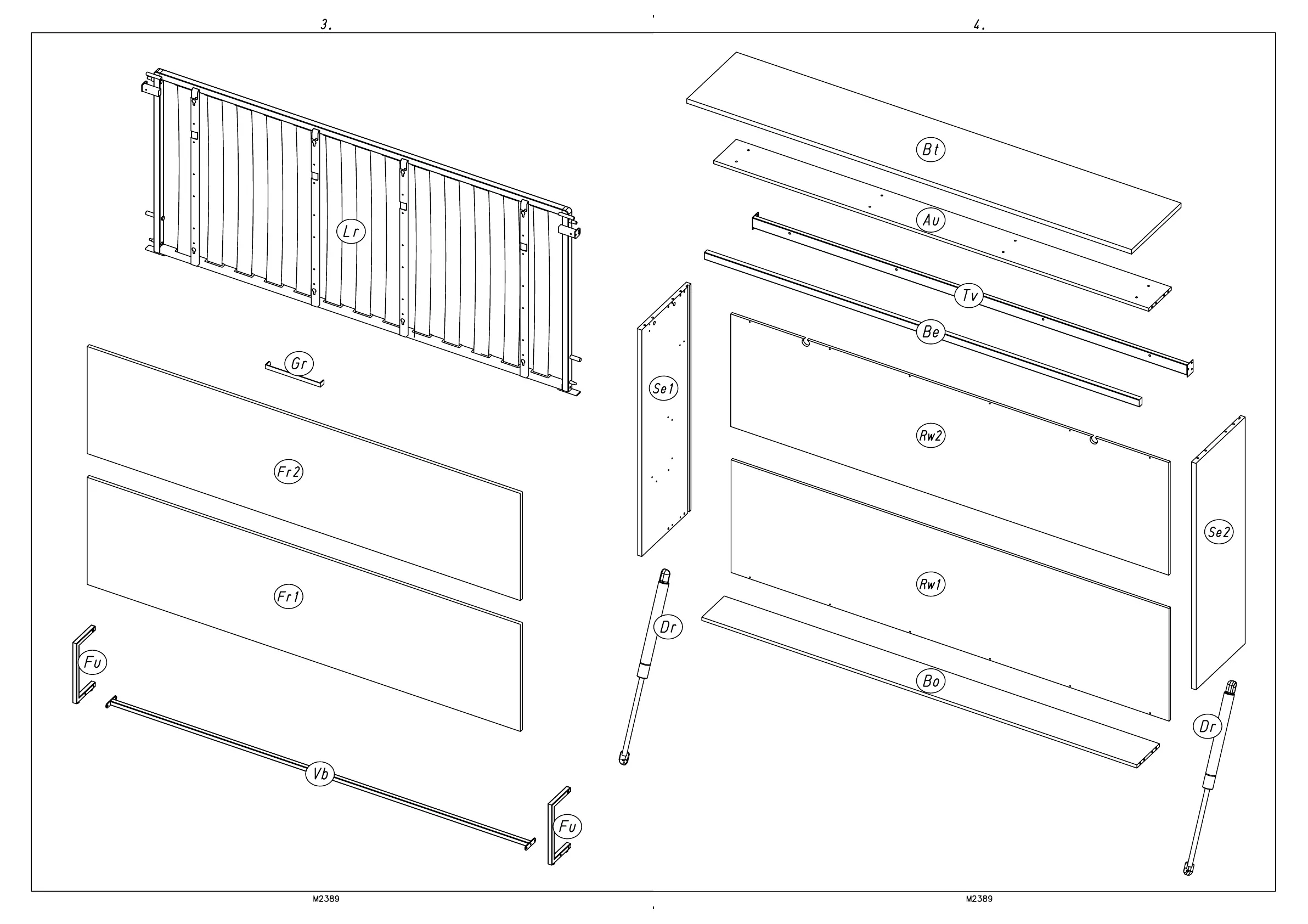 Rauch Albero - Component Identification; Main Frame and Bed Structure Components; Gas Struts and Support Components