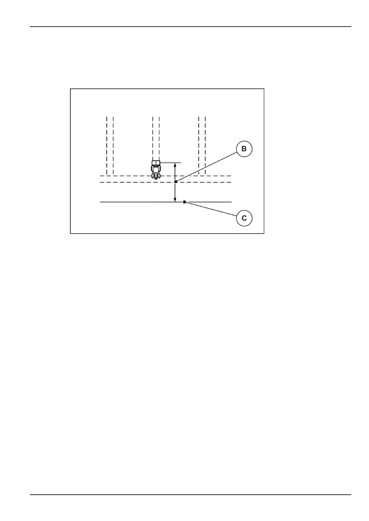 The Turn off dist. (m) parameter refers to the turn off distance [B] measured from the field border [C].