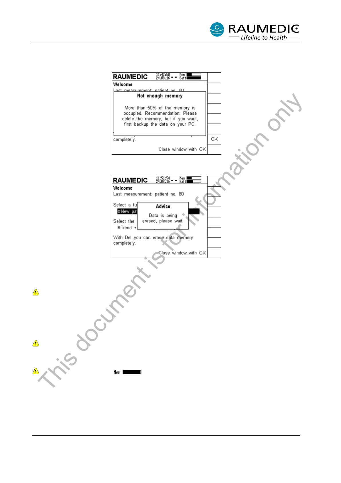 Depending on the memory display you can now decide whether all previously saved patient data are to be