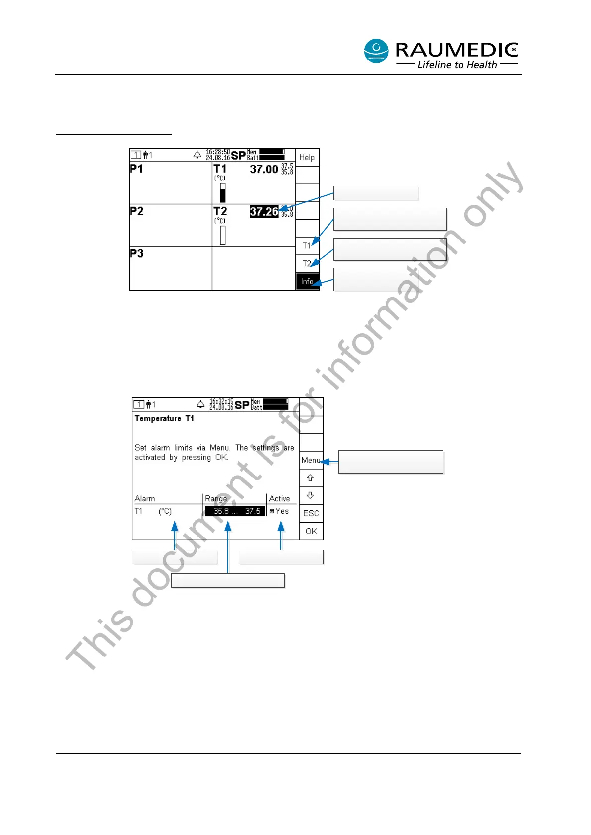 settings of the alarm limits, the alarm activation and the settings of the alarm limits, please refer to chapter