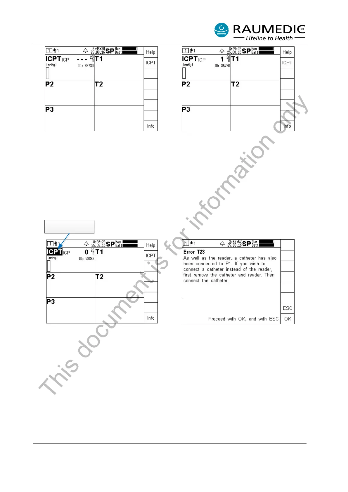 pressing the info key. The behaviour is analogous when the ICP measurement is carried out by means of