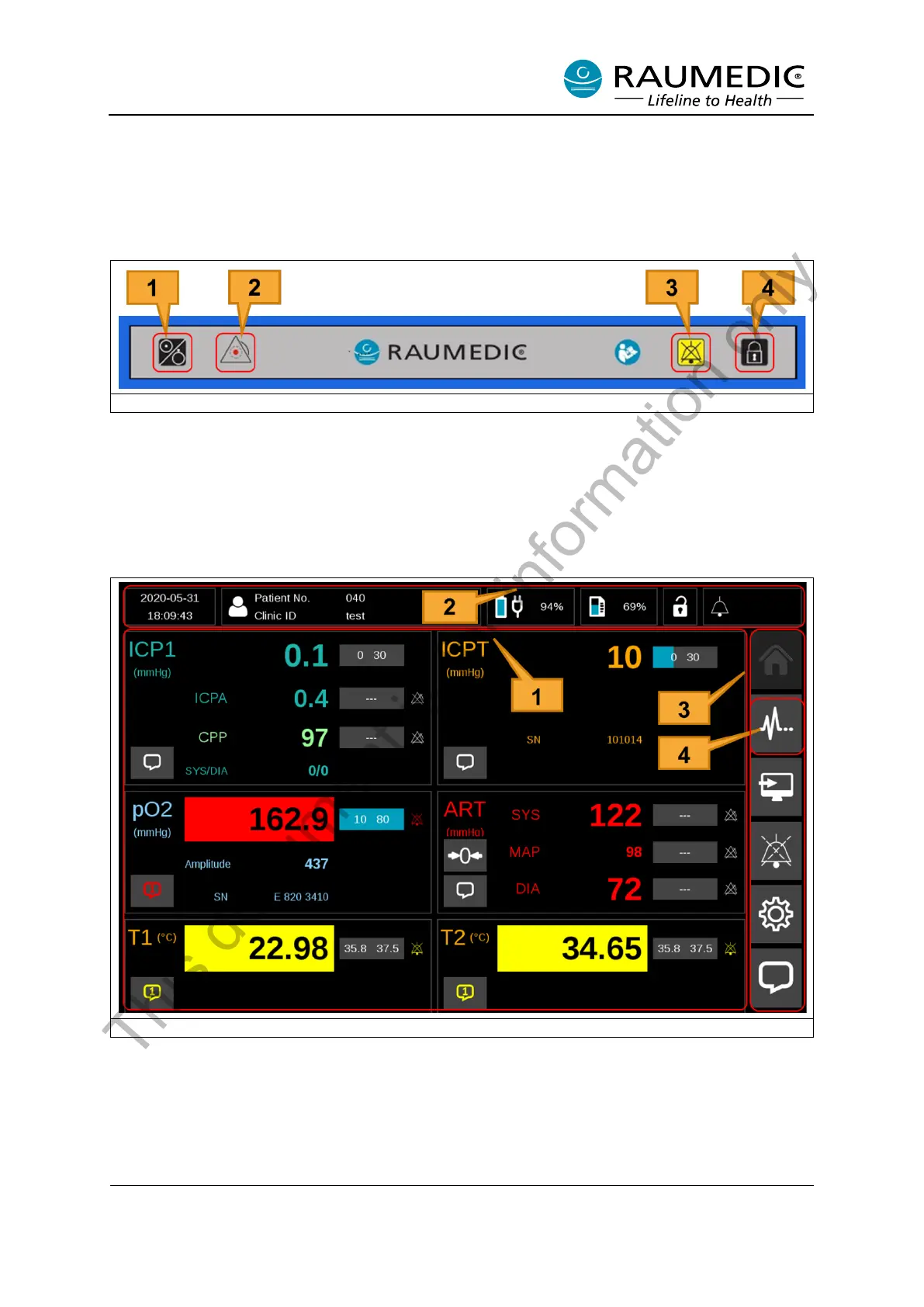 The NeuroSmart can be operated with hard keys (buttons) and soft keys. The hard keys are located