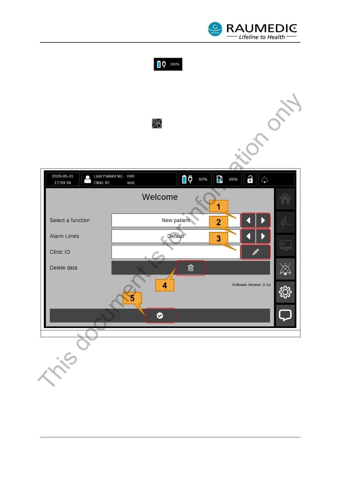 [3] Entry field for Clinic ID: Clicking on this soft key makes a keyboard appear. You can then enter the