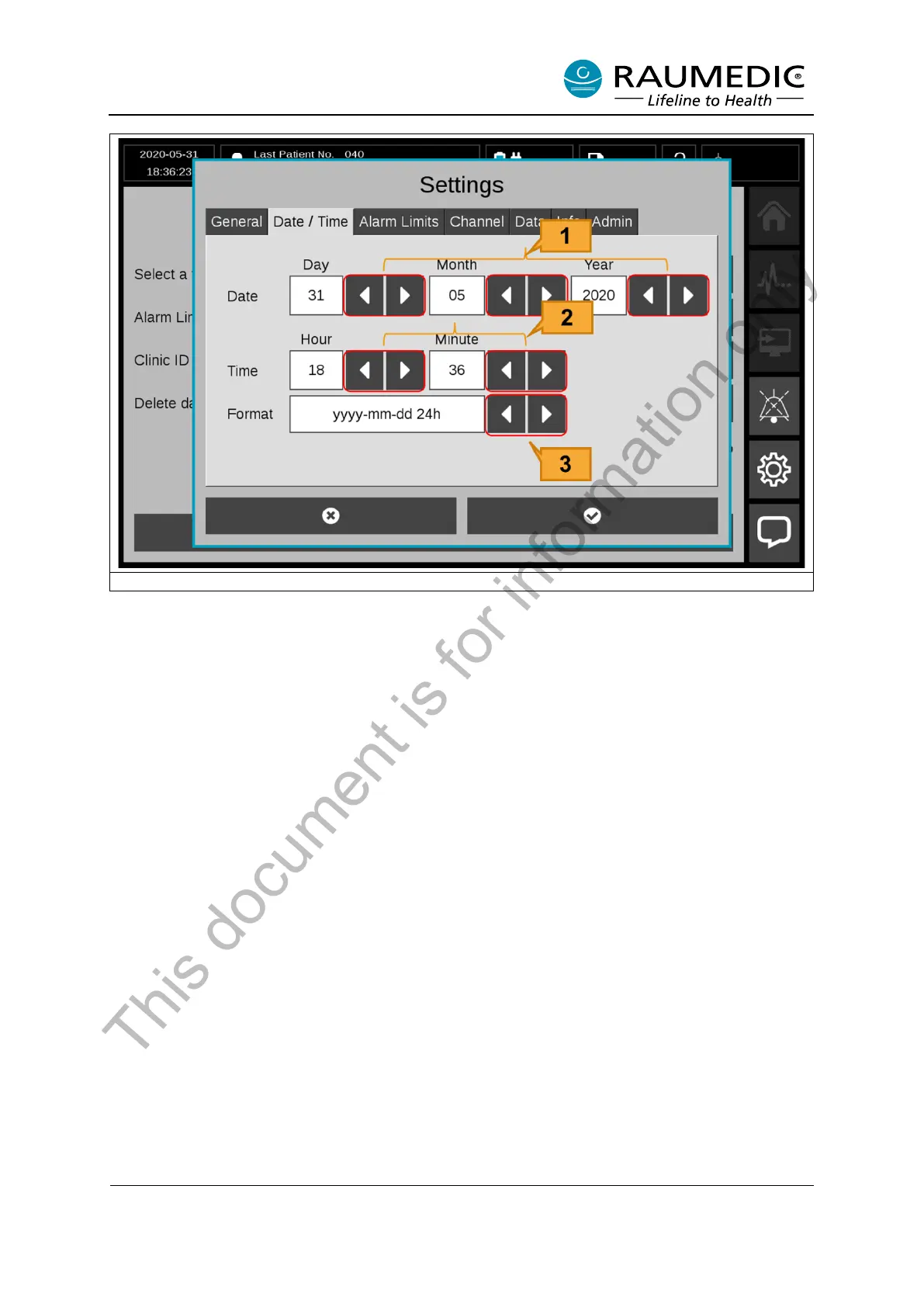 [3] Time Format Select buttons: Selectable: “yyyy-mm-dd 24h” or “dd.mm.yyyy 24h”.