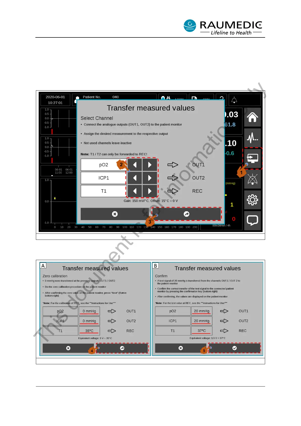 A pressure of 0 mmHg and/or temperature of 35°C is now output. See Figure 25 (A).