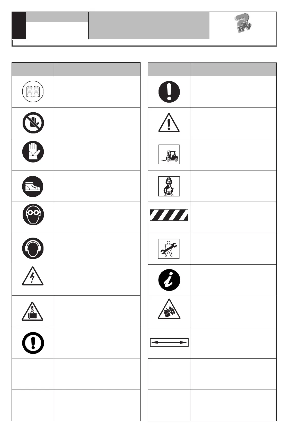 SYMBOLS USED IN THE MANUAL AND ON THE MACHINE