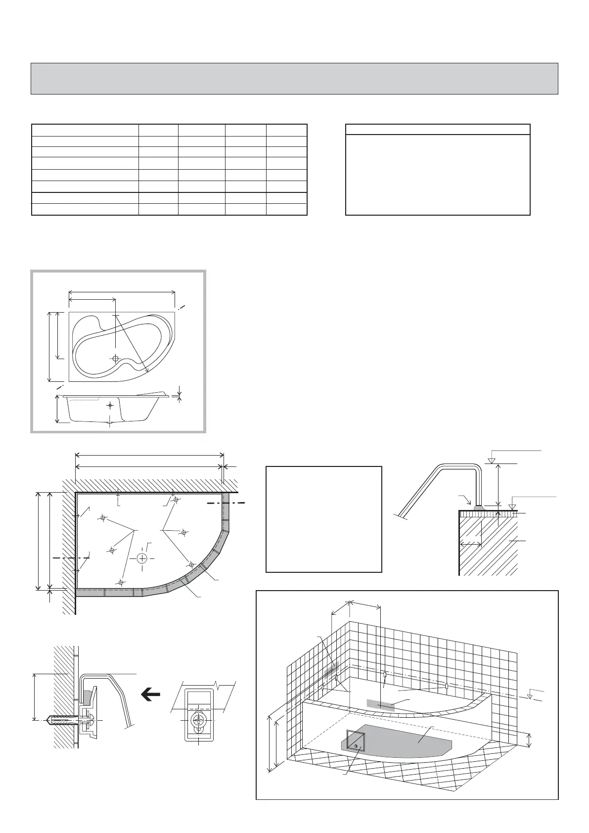 Die Wanne kann nur in einem zuvor fertig verfliesten Badezimmer installiert werden. Die