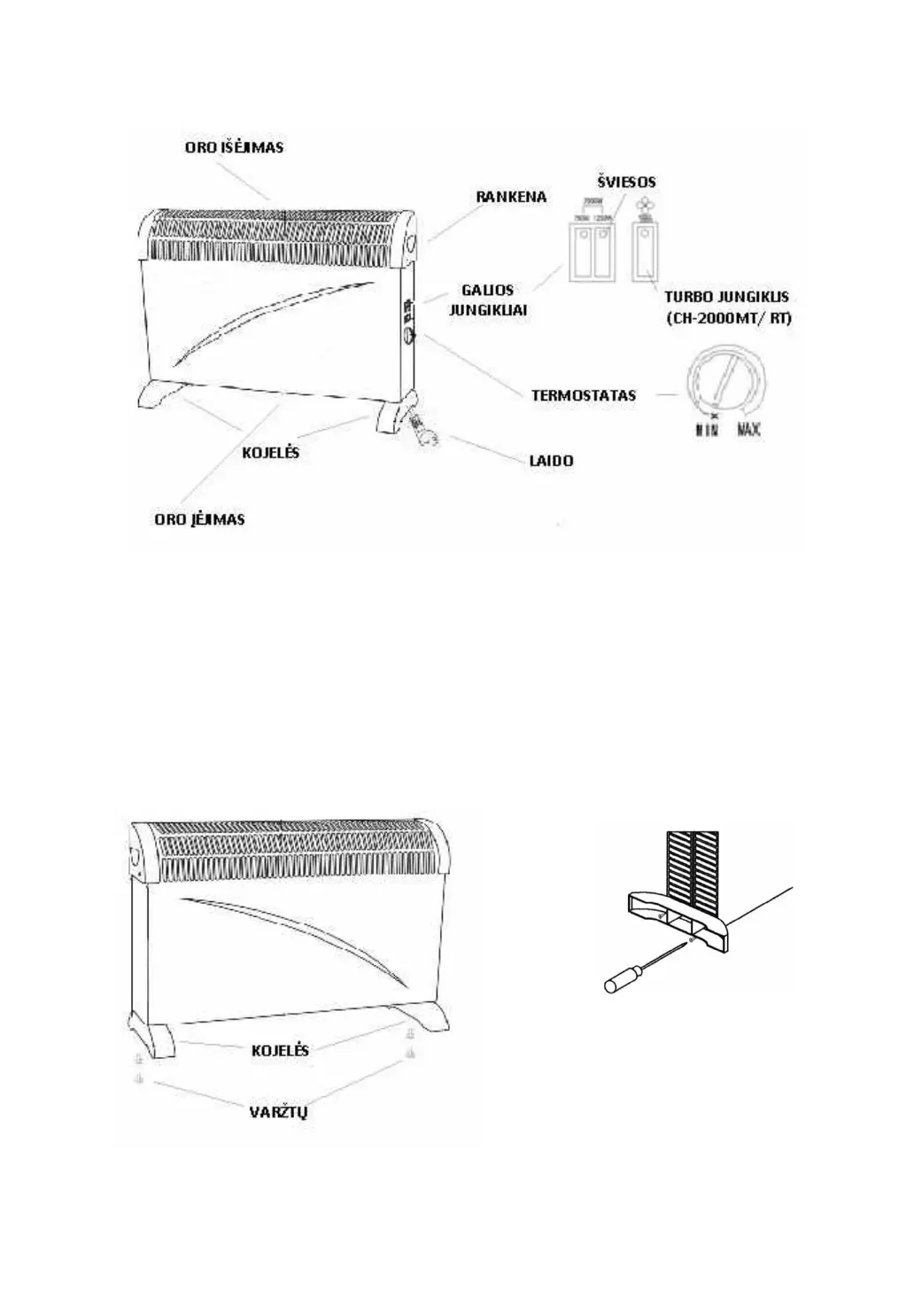 pagalba - turėtų pritvirtinti kojeles prie prietaiso apatinės dalies.