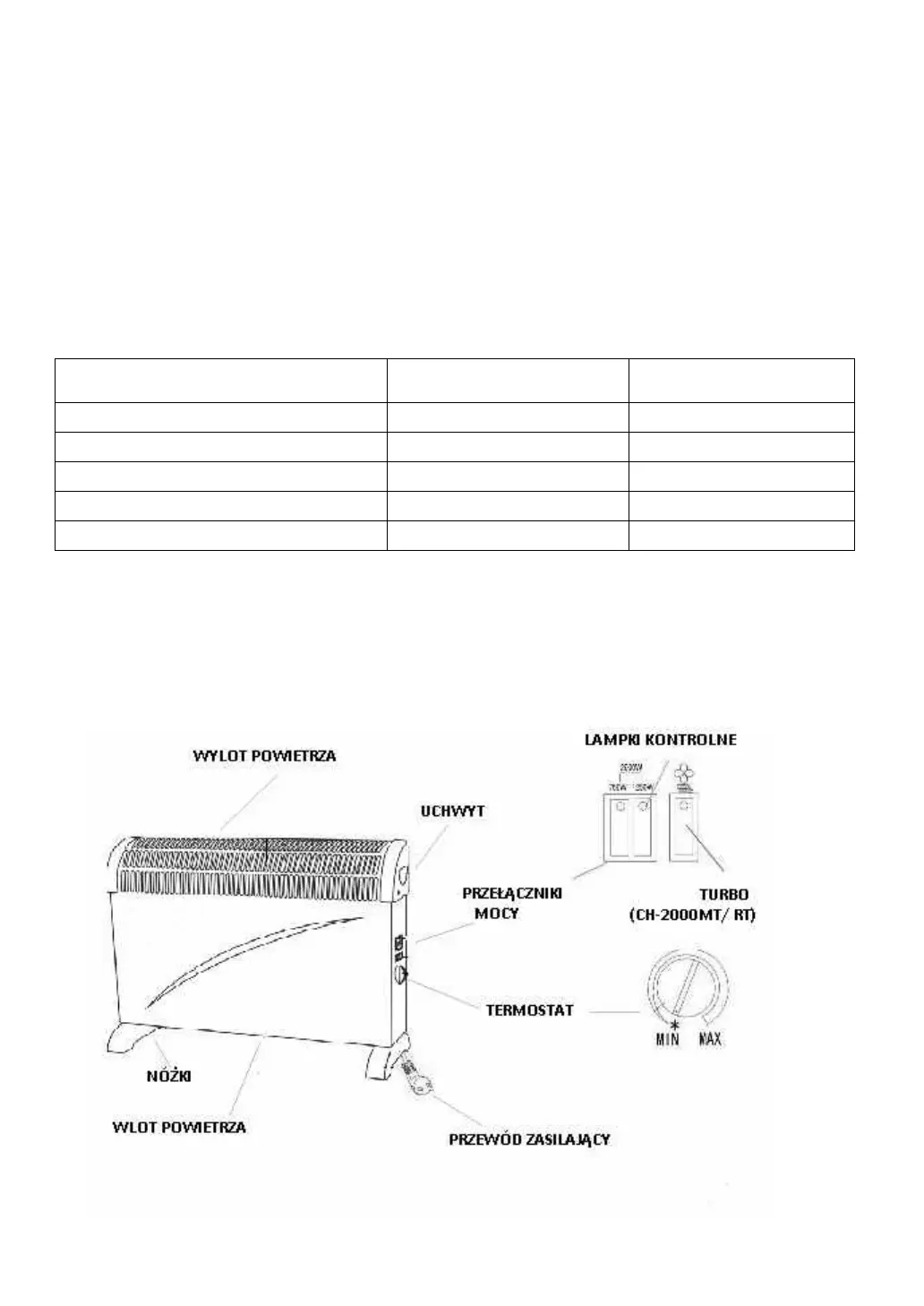 *Modele CH-2000MT i CH-2000RT – z dodatkowym nadmuchem powietrza TURBO