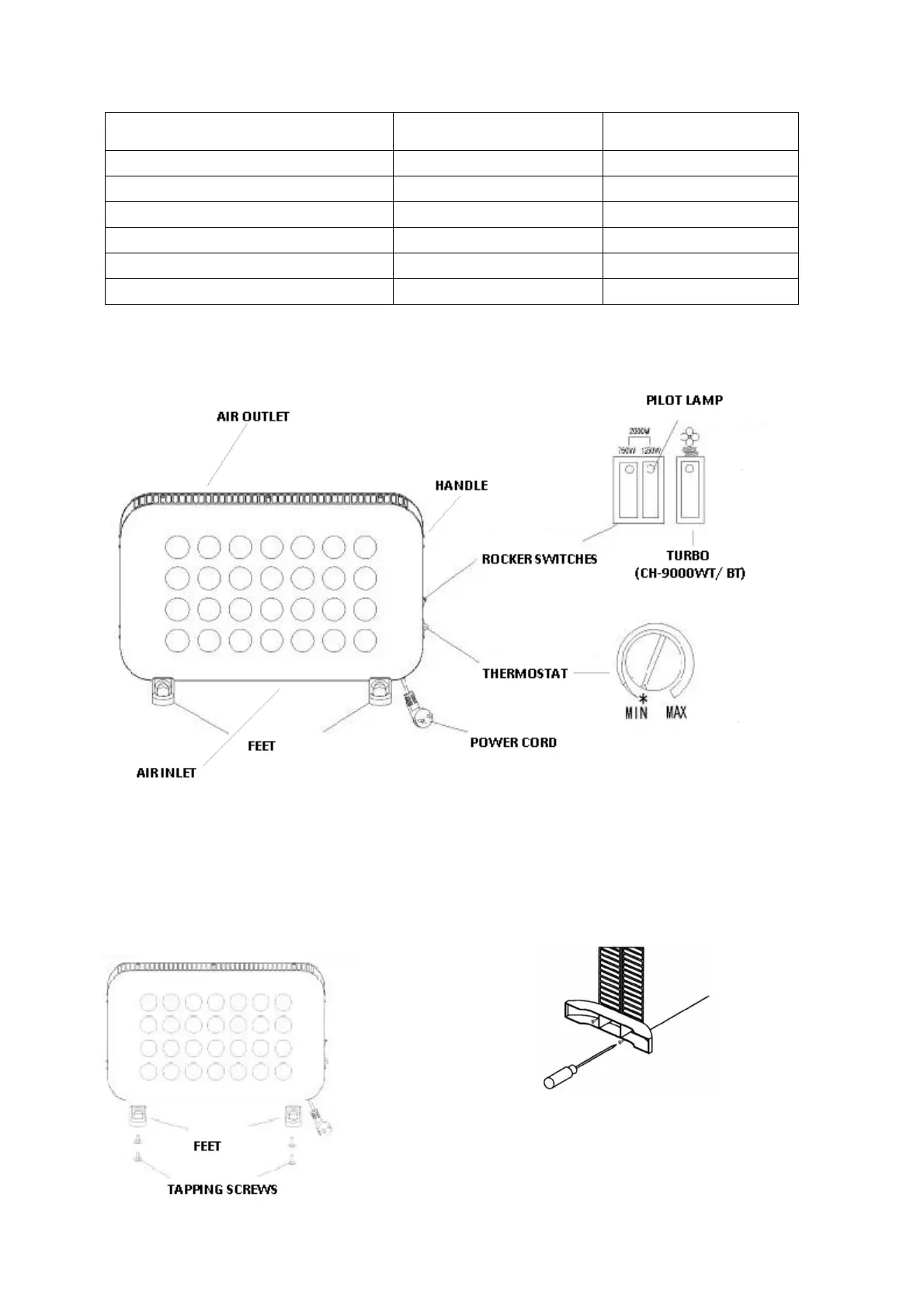 Before using the heater, attach the feet (included separately in the gift box) to the unit.