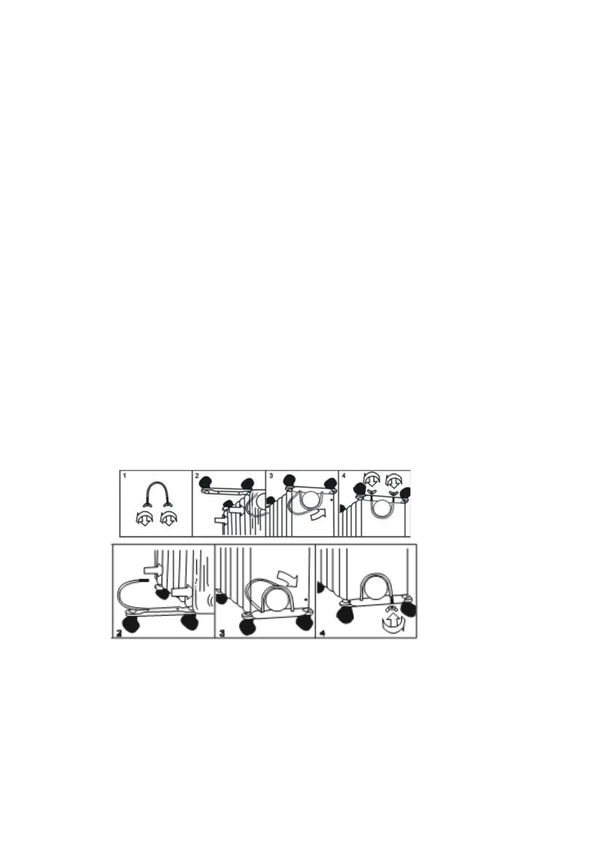 3. Wcisnąć kółka samonastawne w sworznie kół metalowej podpory, do momentu ich “zatrzaśnięcia” we właściwym