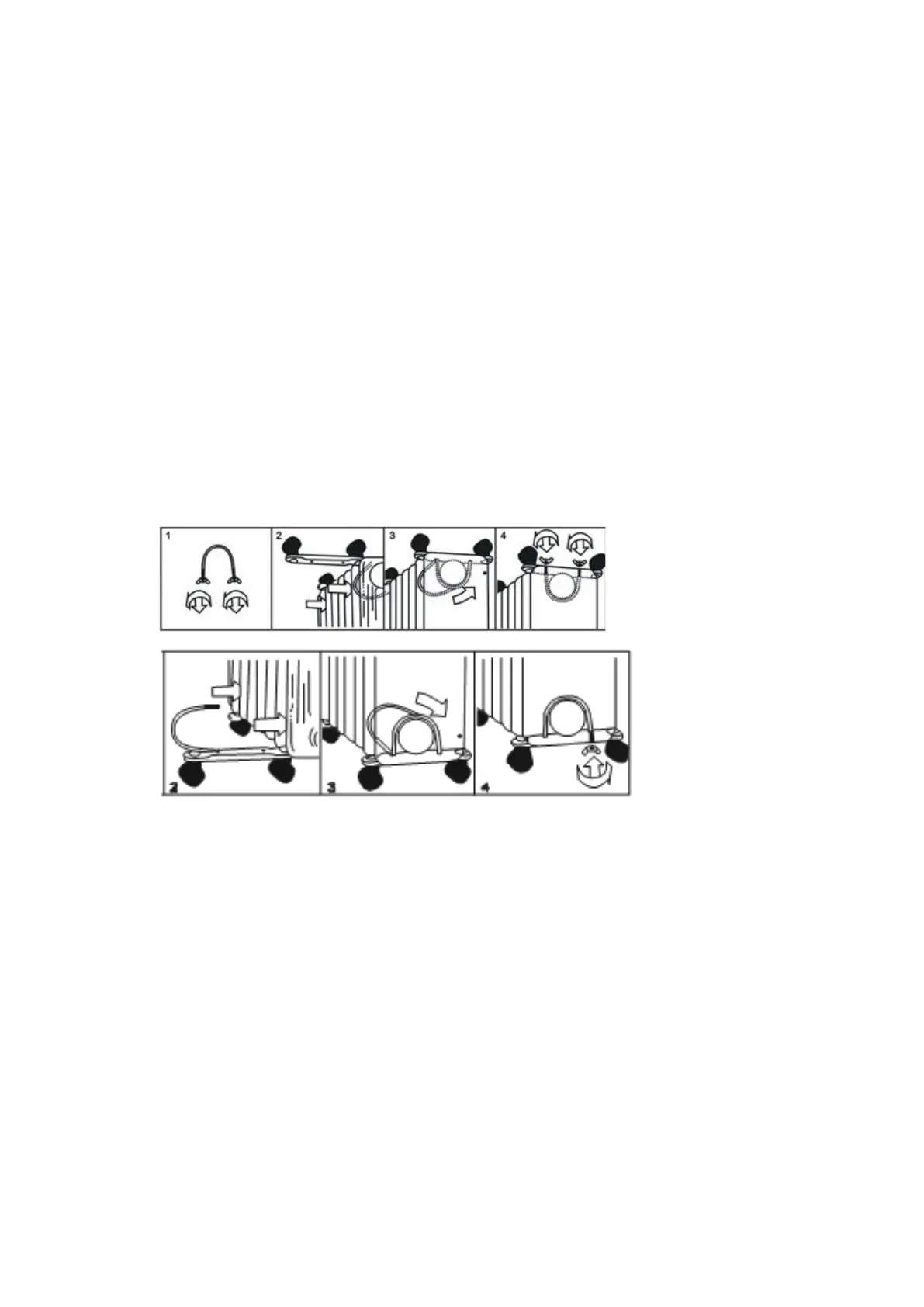 2. Privijte na grelnik nosilca kolesc z uporabo žičnate zanke in krilatih matic.
