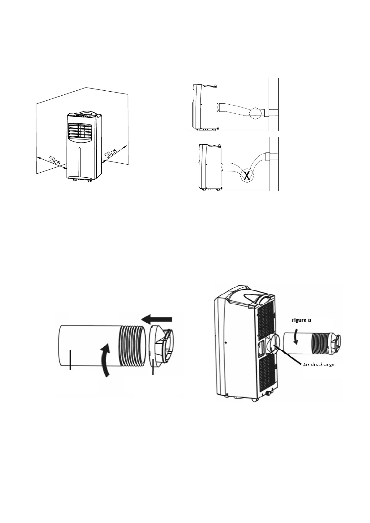 Connect the draining hose with the connector (Fig. A). Connect the hose to the air discharge at the rear (Fig. B).