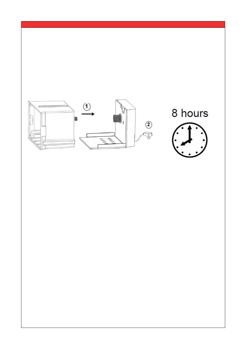 for at least 8 hours, the charger will shut o when the battery pack is completely full. The red