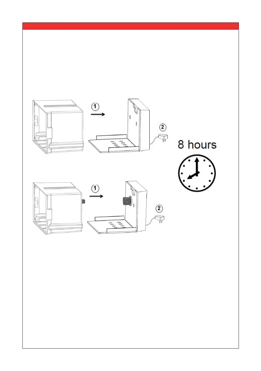 for at least 8 hours, the charger will shut o when the battery pack is completely full. The red
