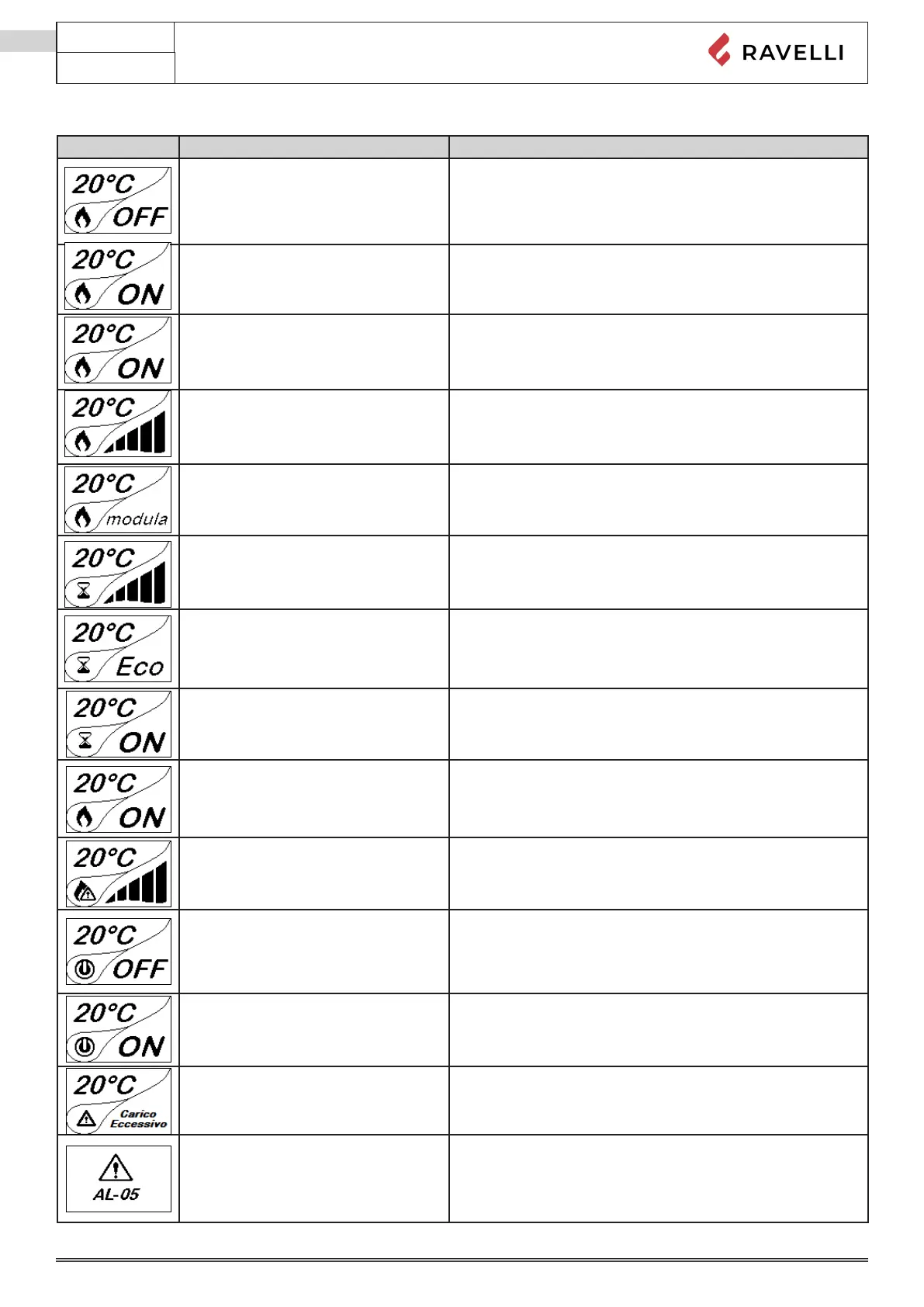 ALARM (generic) The stove is in alarm state; refer to the troubleshooting chapter.