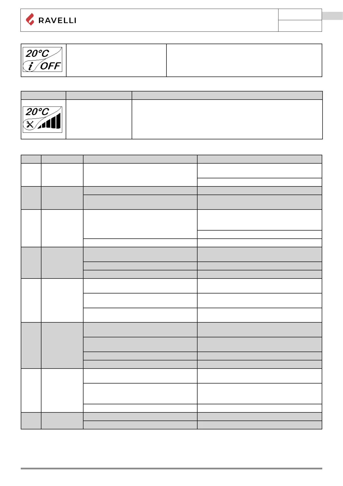 Alarms (table with reference codes)