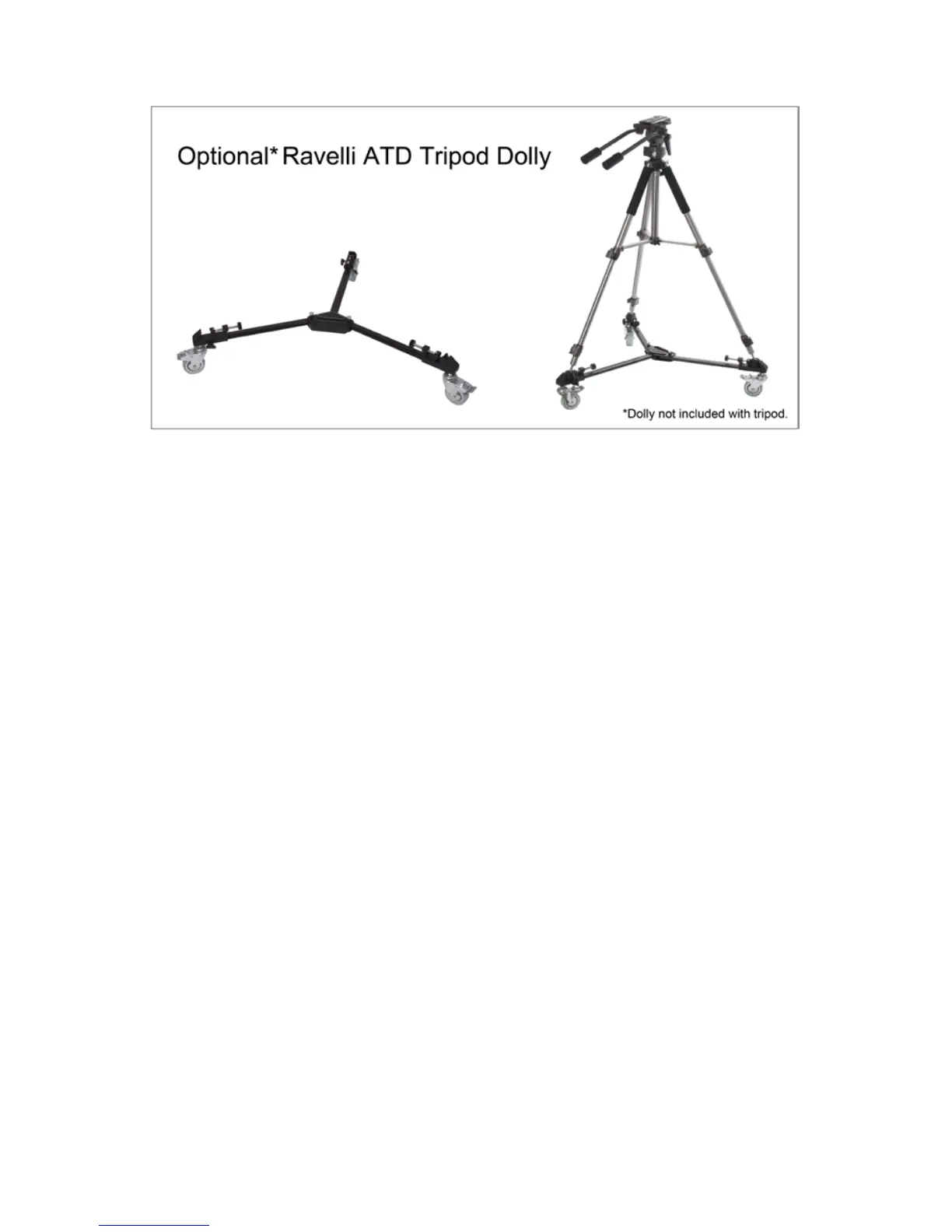 Optional ATD Tripod Dolly*: To easily maneuver your tripod or stands, we