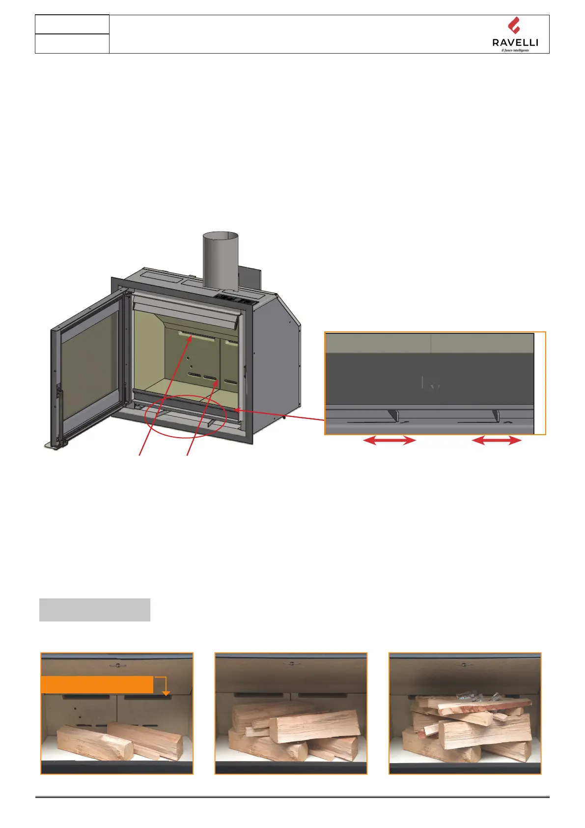 1 Placer les bûches, le petit bois et les sachets/cubes d’allumage dans le foyer comme montré ci-dessous
