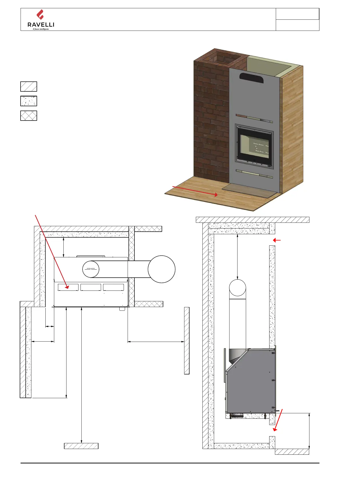 Einbau in brennbarem material mit brennmauer