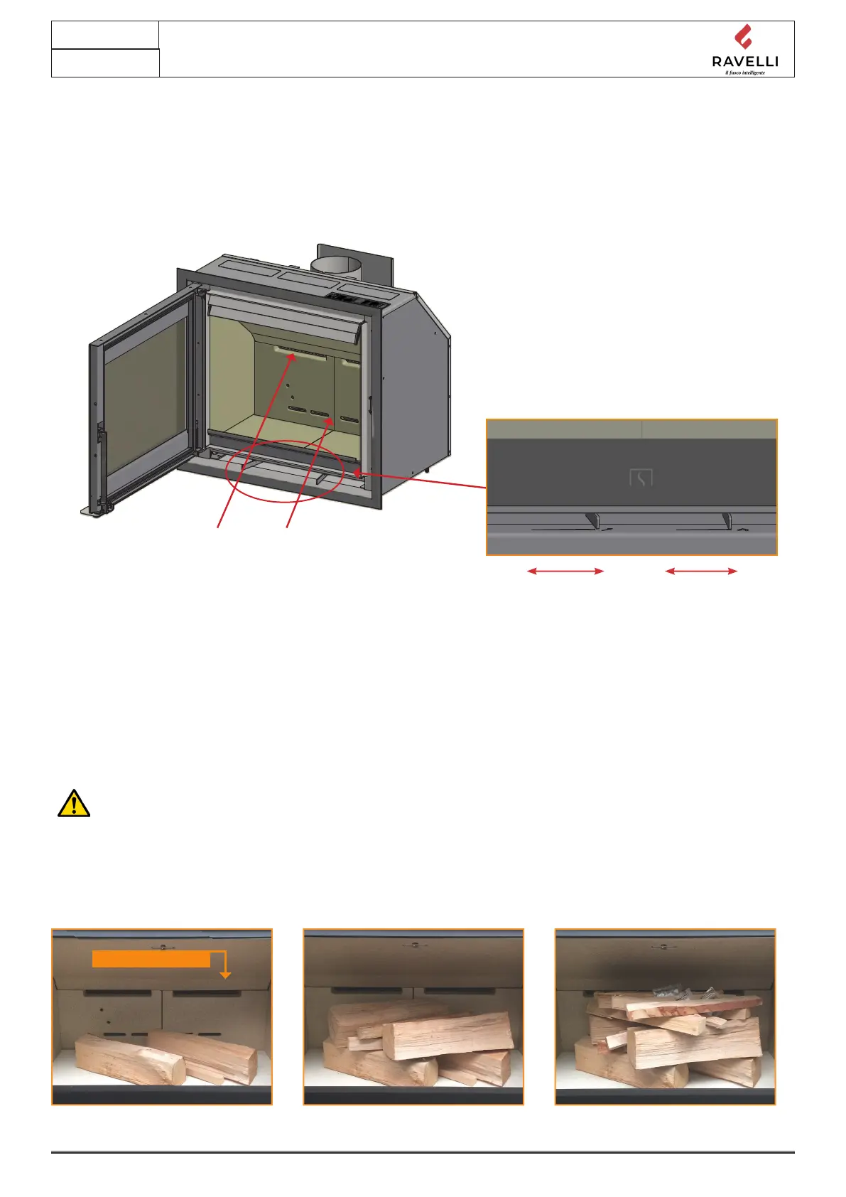 La leña no debe cubrir de los agujeros terciarios (Esto no es válido para arranques en frío).