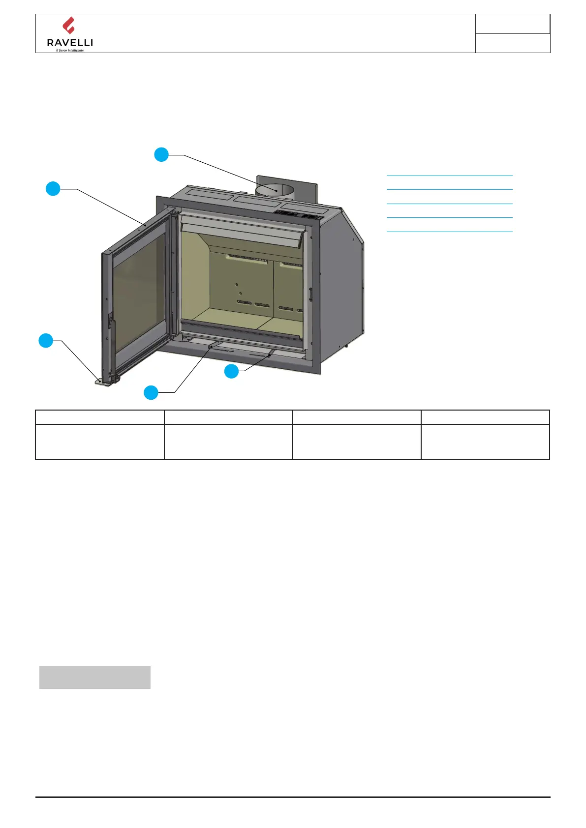 combustion, therefore clean and with low emissions. The door (3) features ceramic glass so you can see the ame, as well as control