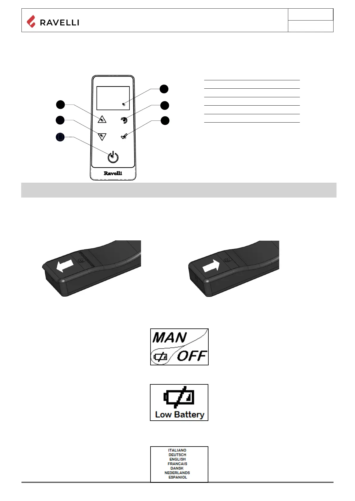 The handheld, after a rst short screen showing the Ravelli logo, will list the languages available in the menu.