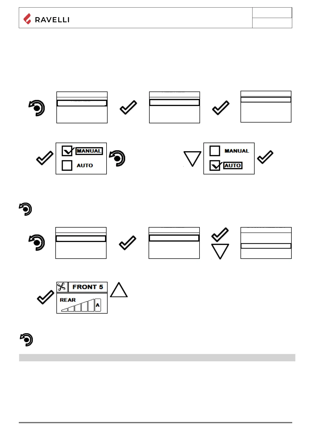 Manual mode: the user manually sets distribution of warm air between front ventilation and ducting.