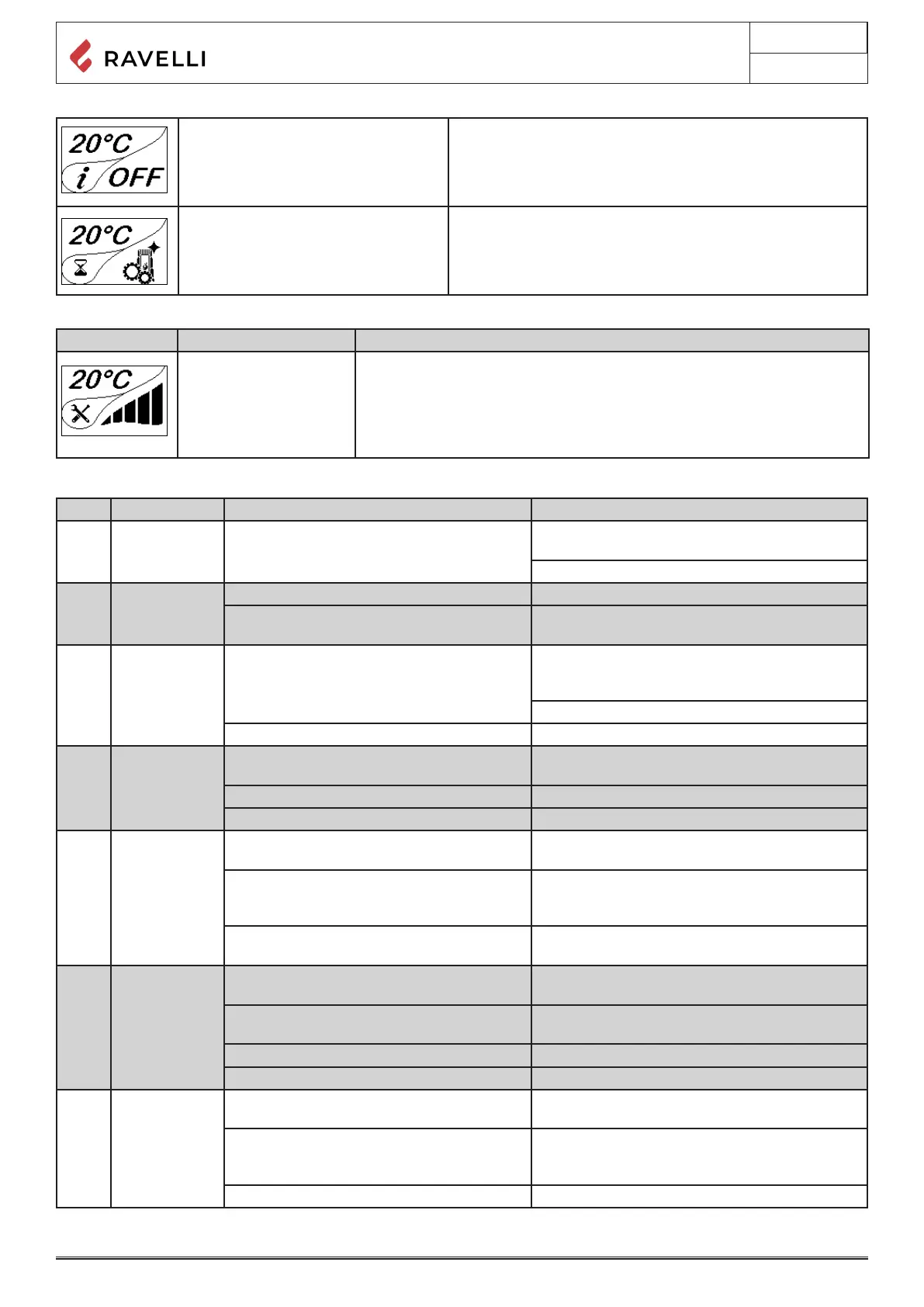 Alarms (table with reference codes)