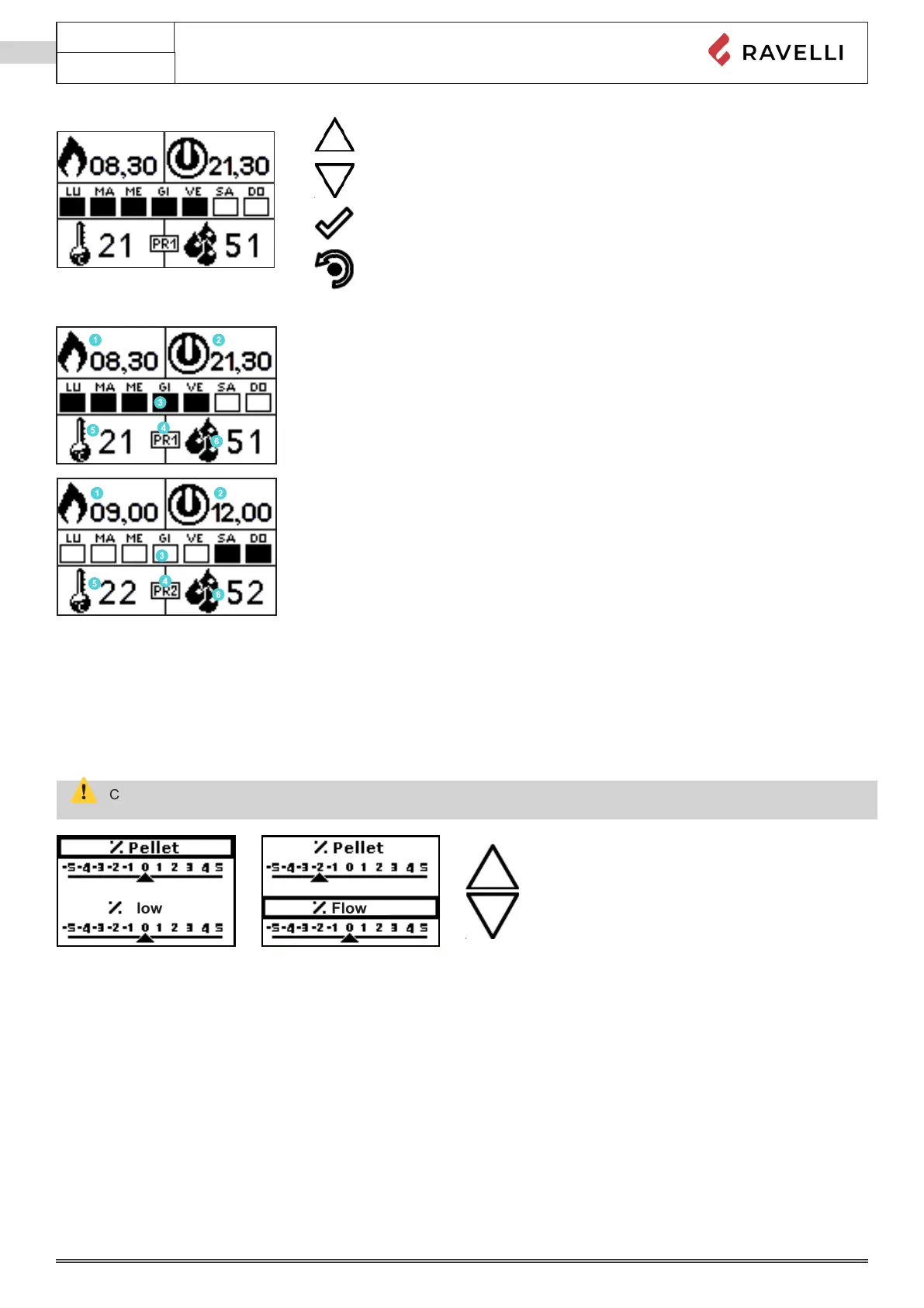 The setting of the PELLET - FLOW mixture allows to adjust the combustion by varying the quantity of pellets loaded in the brazier